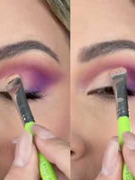 Brocha plana de fibra sintética diseñada para trabajar productos en crema como correctores, pre bases y pigmentos.